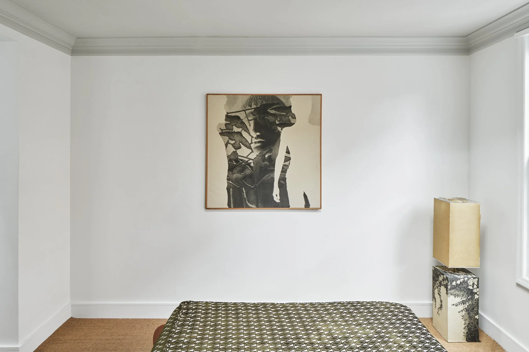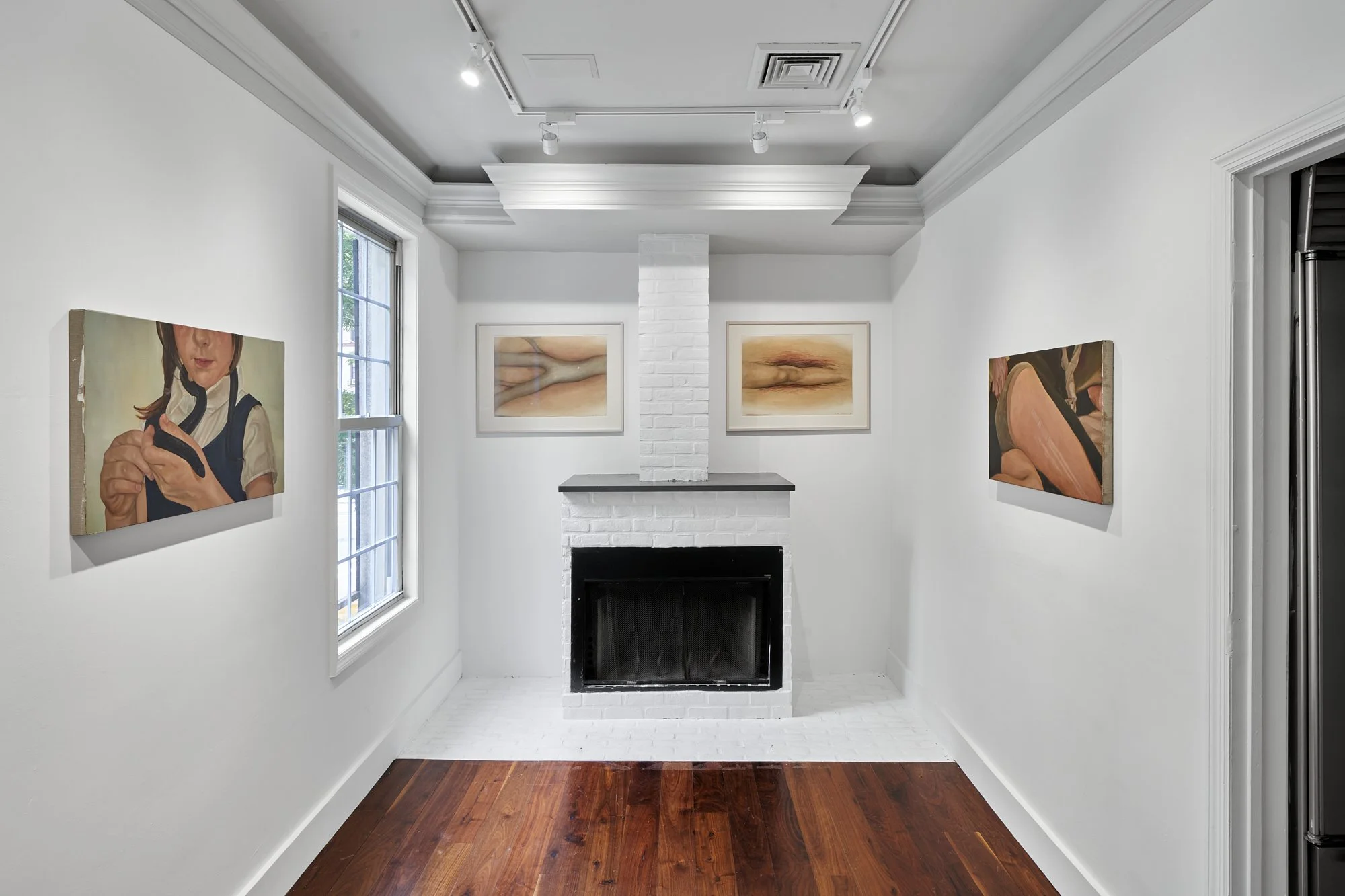 Towers often probes domestic spaces as a means to explore the dimensions of a femininity confined to interiority. Here, the weight of performance and a contingent voyeurism proliferates. She’s sympathetically linked to Dorothea Tanning’s autobiographical surrealism that binds a bodily focus to peculiar contexts. Her work also recalls the unconventional cropping patterns of Philip Pearlstein, though his figures are largely reduced to objects and shapes in space. Towers’ women, on the other hand, are more agentic. Often rendering obscured subjects from behind, the painter stages affective provocations through singular images. Towers is especially prudent when it comes to the perfect vantage point, exacting each depiction of the body in order to induce a sense of nebulousness. She blends self portraiture with movie stills, art historical references, editorial shots, and the like.