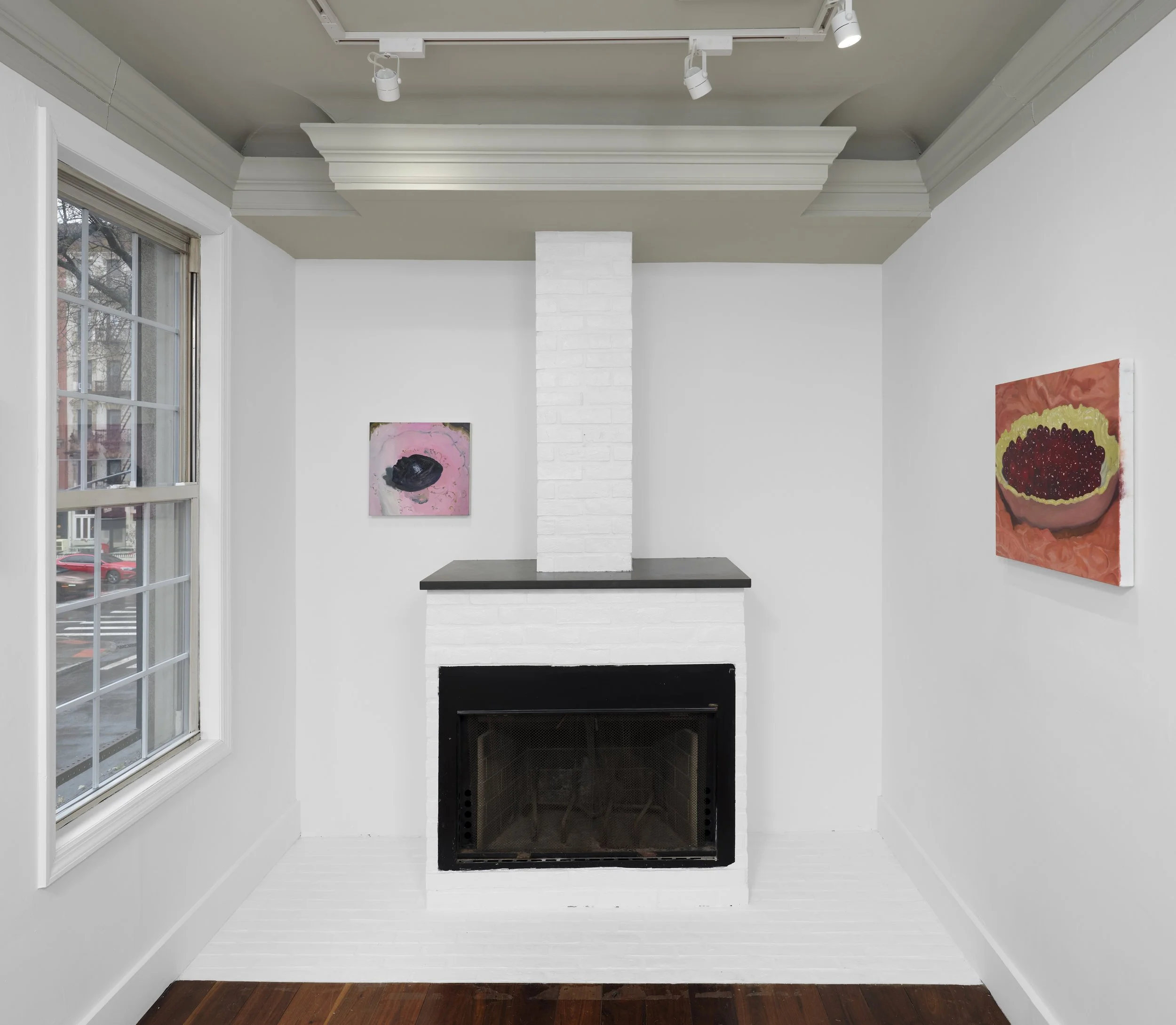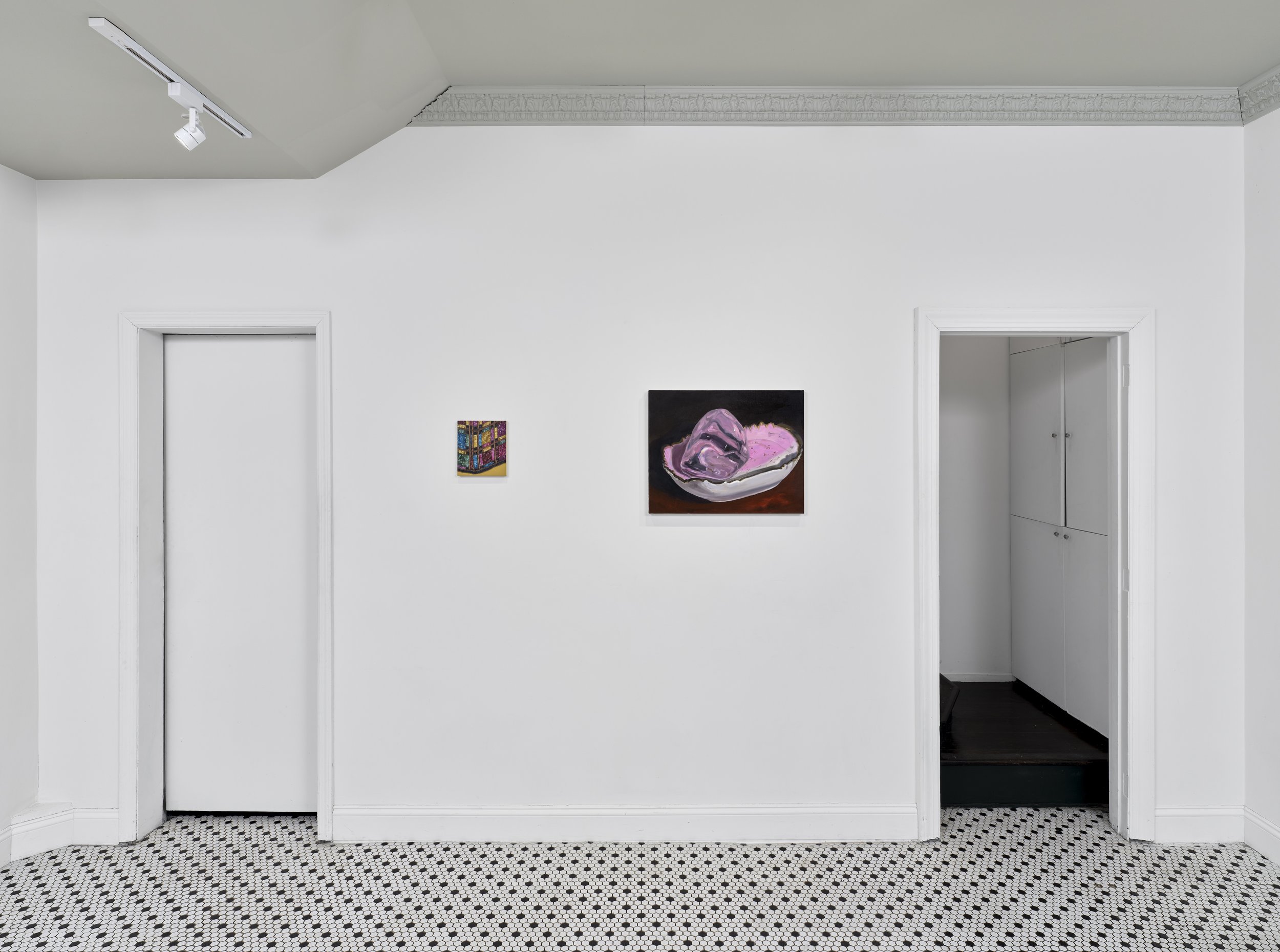 Waller’s paintings of melting ice register subtle shifts in light, temperature, and surface, emphasizing material change as an active component of the image. Attending to moments when perception remains provisional, she treats the subject not as a fixed image but as a site of ongoing variation. Related works depicting a cherry pie and a charred heart extend this attention to conditions of heat, exposure, and transformation, allowing abstraction to emerge through close observation rather than reduction.