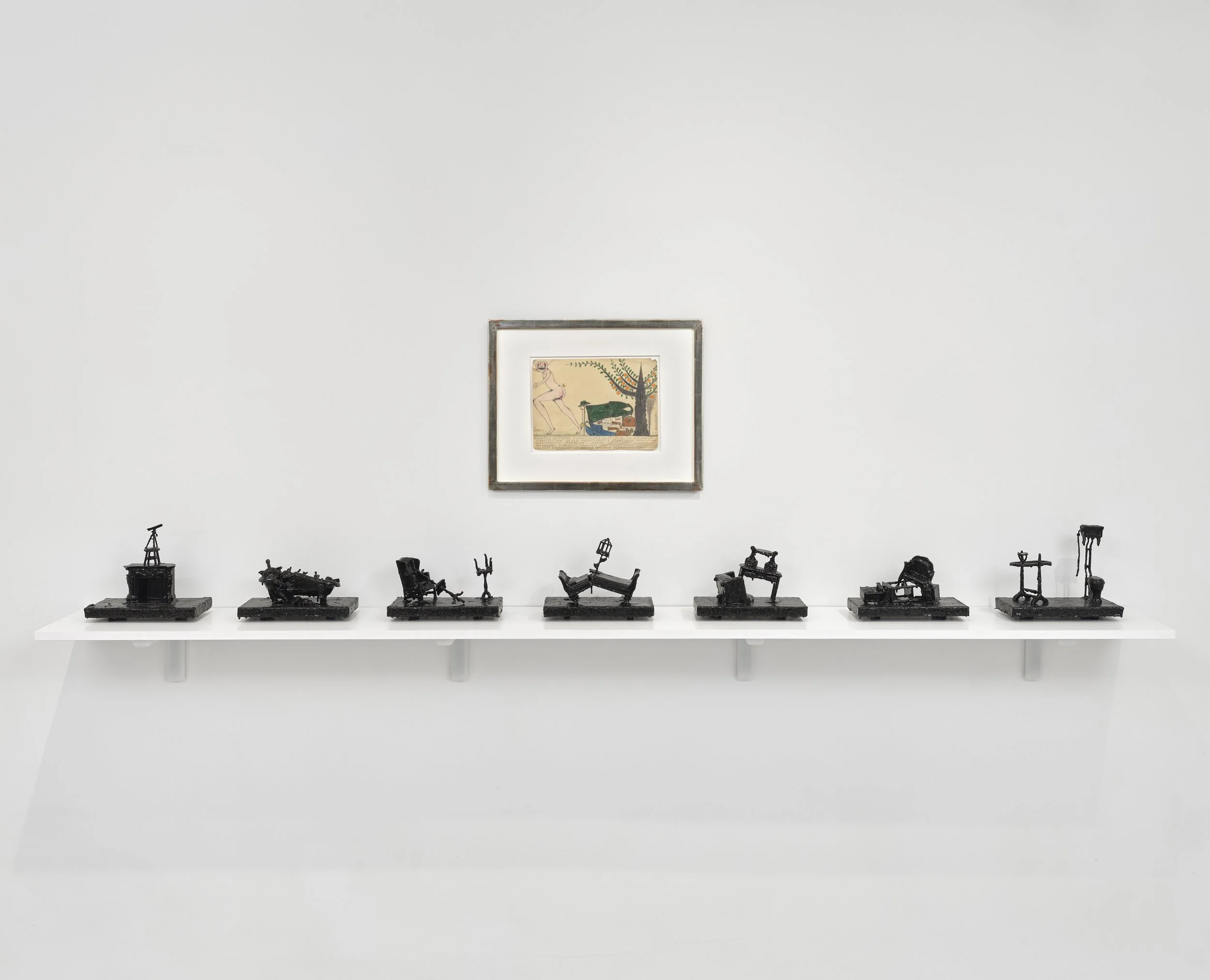 Schlesinger’s landscapes and gardenscapes explore similar perceptual concerns through imagined forms. Her darkened hedges and horizons rely on perspective, shadow, and compositional restraint, slowing perception and foregrounding the mechanics of seeing. These works operate less as depictions of place than as constructions shaped by duration and attention.